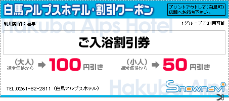*割引クーポンのお問合せ…TEL.0261-82-2811(白馬アルプスホテル)
