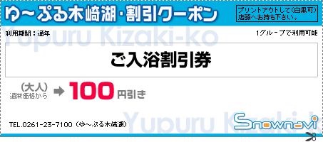 *割引クーポンのお問合せ…TEL.0261-23-7100(ゆ~ぷる木崎湖)