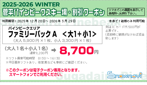 *本クーポンをご利用の際はパインビーク場内 総合・第6チケット売場にご提示ください。