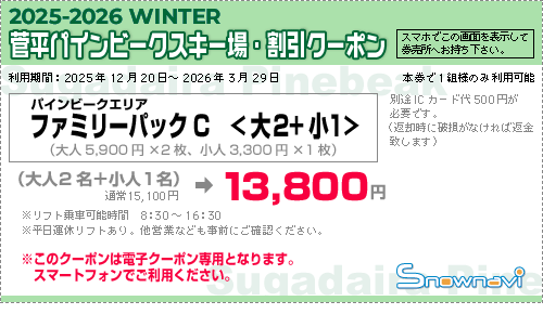*本クーポンをご利用の際はパインビーク場内 総合・第6チケット売場にご提示ください。