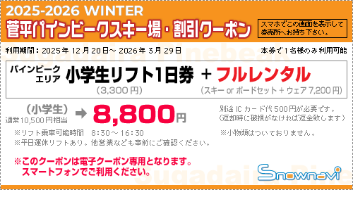 *本クーポンをご利用の際はパインビーク場内 総合・第6チケット売場にご提示ください。