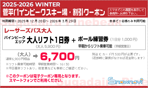*本クーポンをご利用の際はパインビーク場内総合チケット売場にご提示ください。