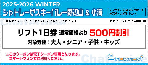 When using as an electronic coupon, Keep this screen displayed Present it at the ski resort ticket office.
